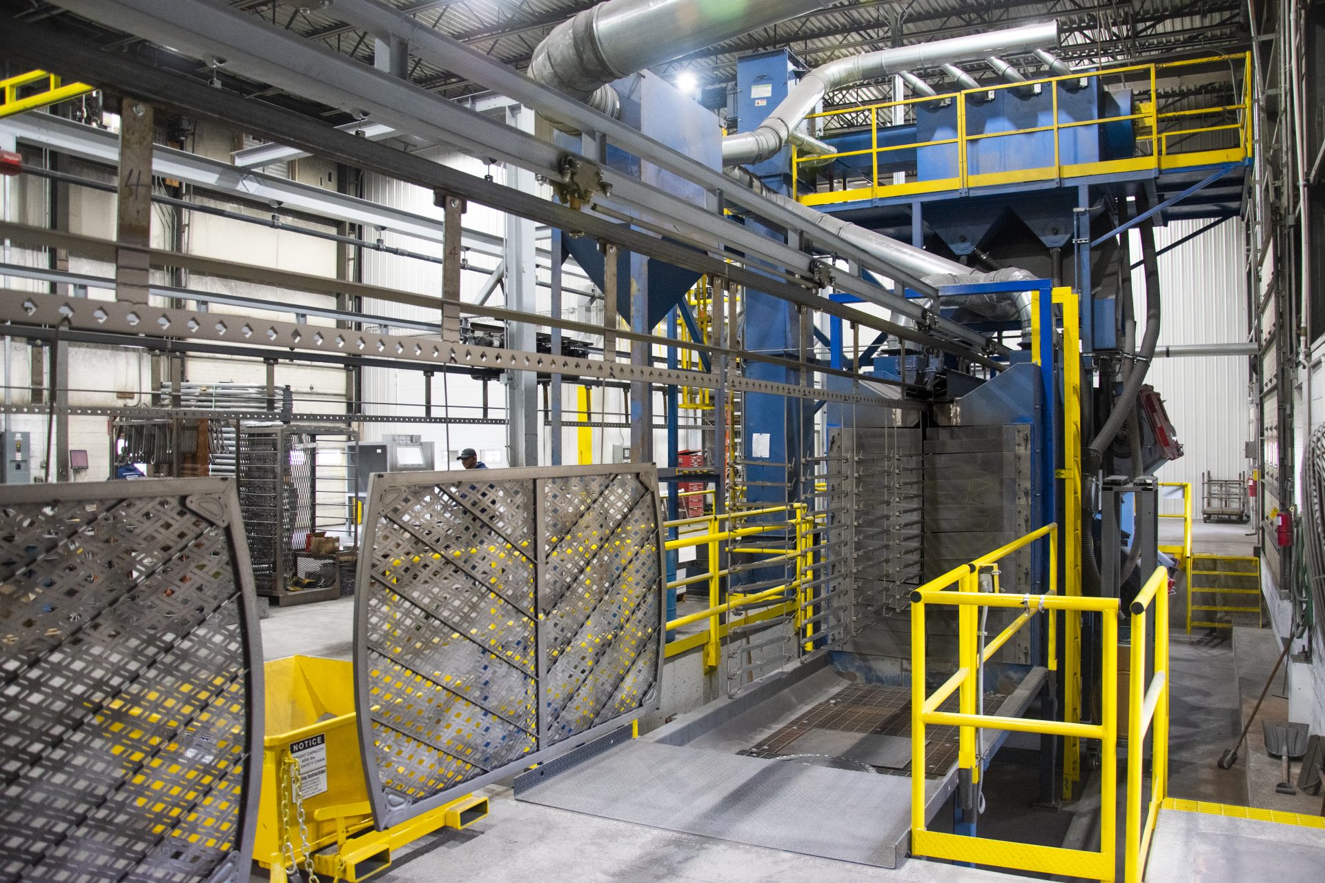 The roller conveyor is a shot blasting machine that treats long or flat components by passing them through preparation, blasting and cleaning chambers on a roller conveyor belt.